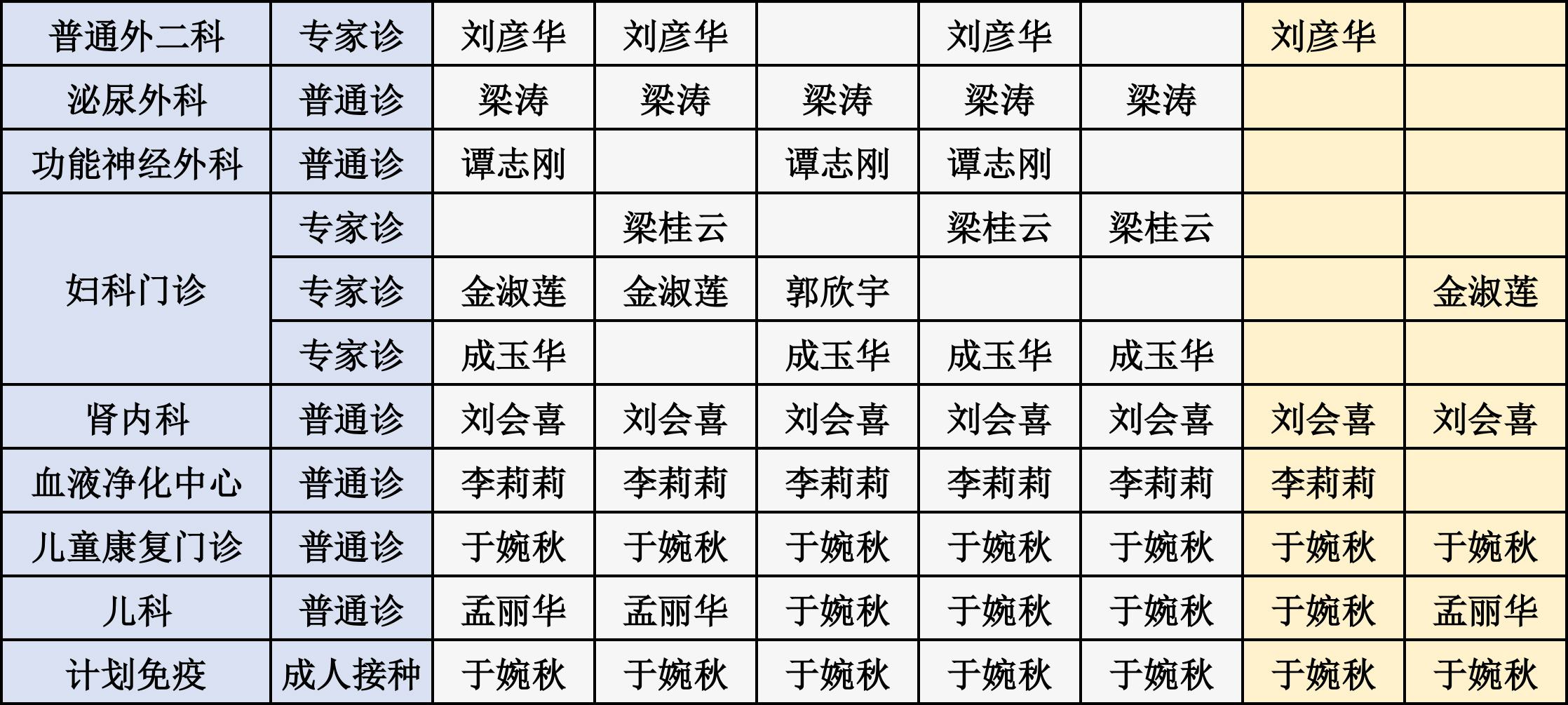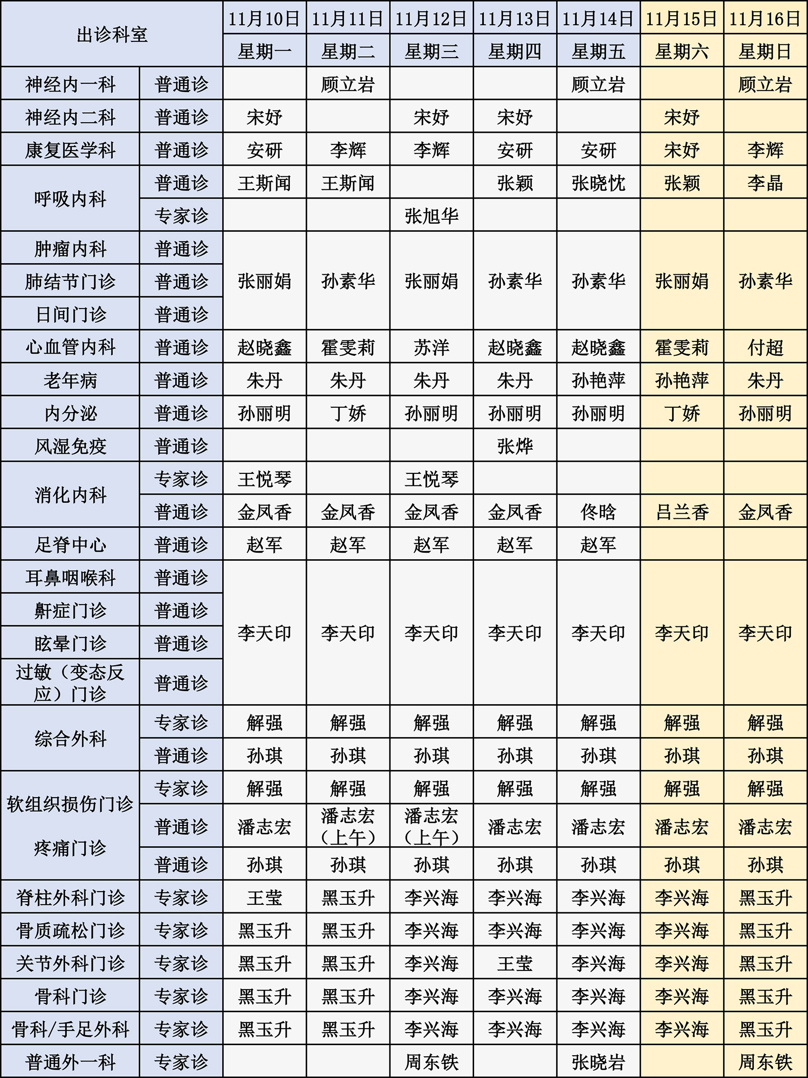 出诊安排|东北国际医院北院区11月10日-11月16日出诊安排