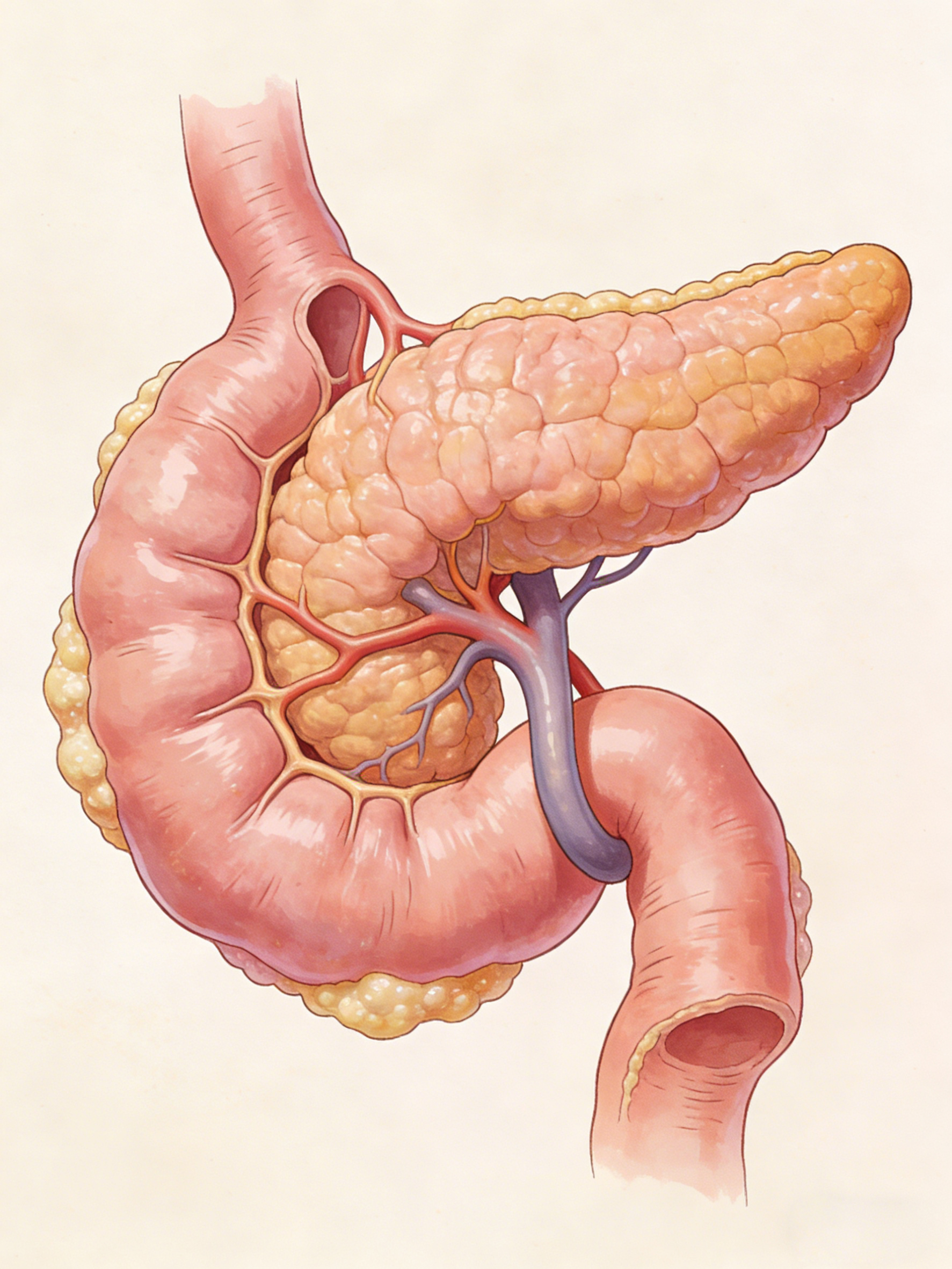 要了解胰腺炎为何易在春节高发,首先要清楚胰腺的功能。胰腺是人体深藏在胃后方的“隐形消化功臣”,同时兼具内分泌和外分泌功能:外分泌部分分泌含有多种强力消化酶的胰液,这些酶原本应在进入肠道后,才被激活并帮助分解蛋白质、脂肪和糖类;内分泌部分则分泌胰岛素、胰高血糖素,调节体内血糖水平,维系代谢平衡。正常情况下,胰液会顺着胰管顺利进入肠道,各司其职,但春节期间的不良饮食作息,会打破这种平衡。如若大量摄入高脂肪、高蛋白食物,再加上过量饮酒,会刺激胰腺分泌大量胰液,同时加重胃肠负担,导致胰液排出受阻、反流,胰酶在胰腺内部被激活,进而“消化”自身组织,引发急性炎症,造成胰腺水肿、出血甚至坏死。